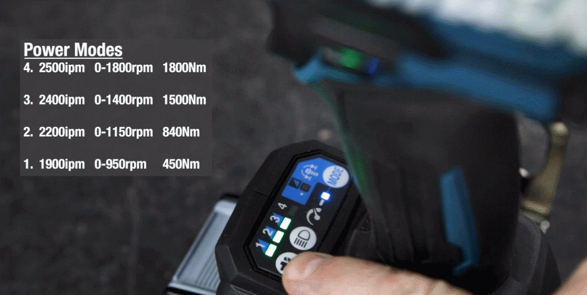 RPM/インパクト周波数:0-950/1200/1800/2200 RPM、0-1000/1700/2000/2400 IPM(4スピード)